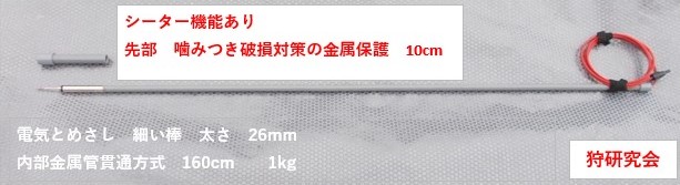 狩研究会の電気棒に取り付けできます。